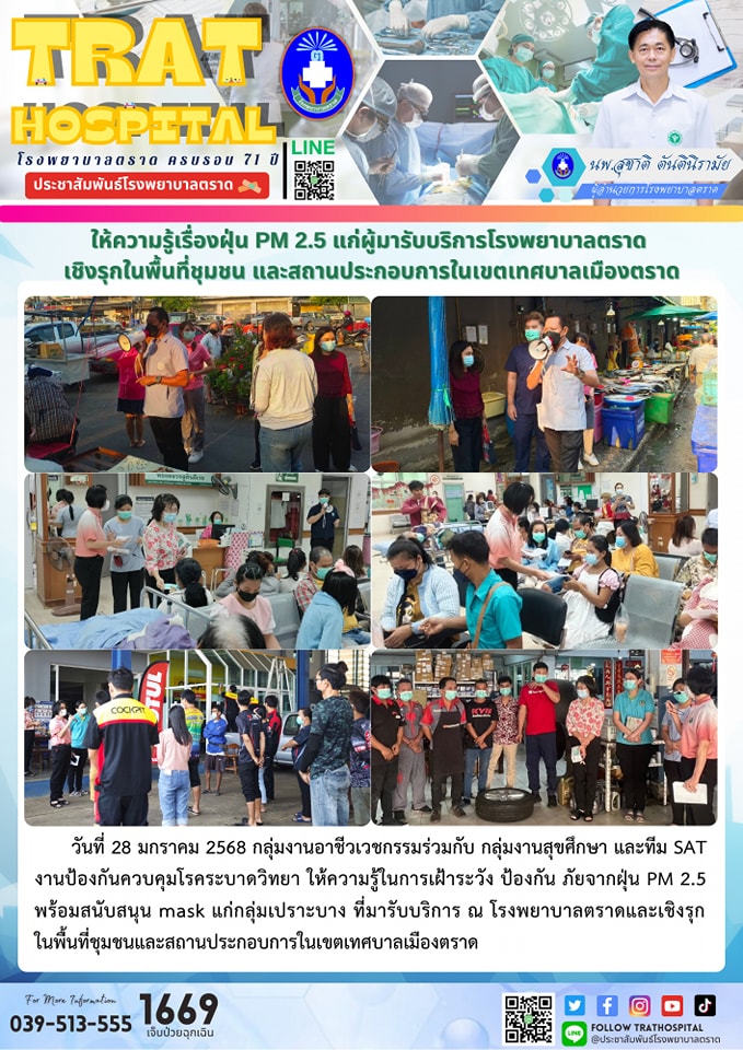 กลุ่มงานสุขศึกษา ร่วมกับกลุ่มงานอาชีวเวชกรรม ให้ความรู้และการป้องกัน ฝุ่น PM2.5 ในจังหวัดตราด