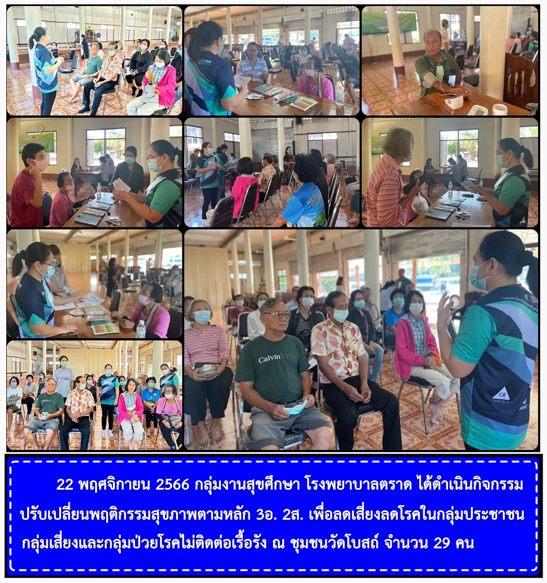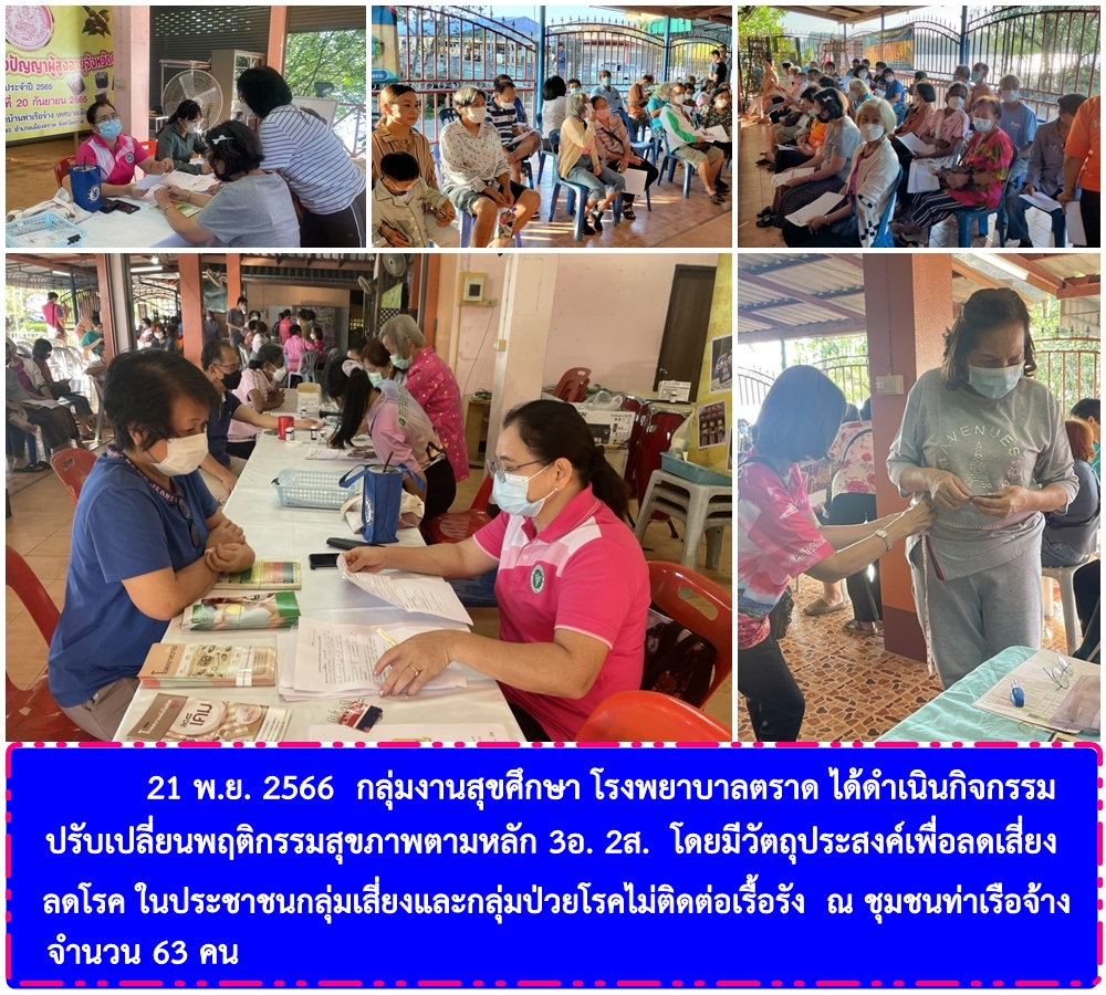 กลุ่มเสี่ยงด้วยหลัก 3อ.2ส. แก่กลุ่มเสี่ยงโรคไม่ติดต่อเรื้อรัง ประชาชนในเขตเทศบาลเมืองตราด